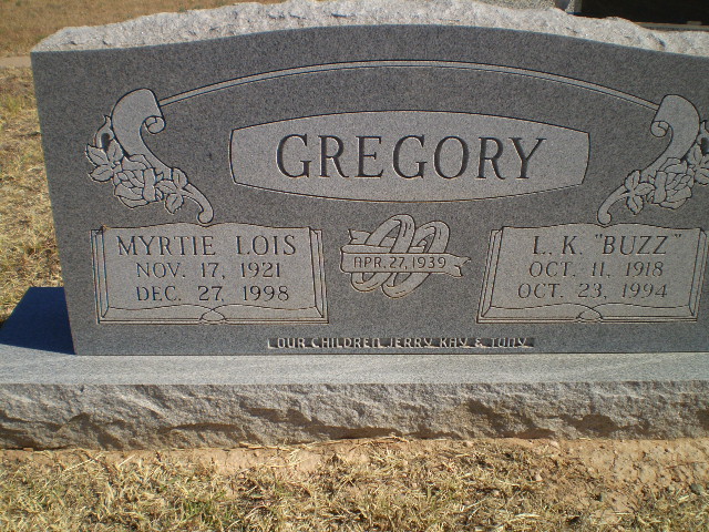 | Name | Gregory, L. Kenneth (Buzz), Mrs. (Myrtie Lois Hughes) |
