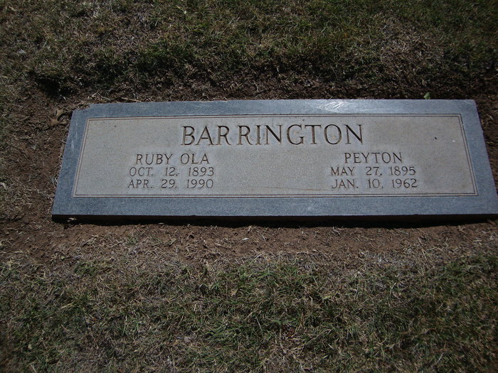 | Name | Barrington, Peyton, Mrs. (Ruby Ola) |