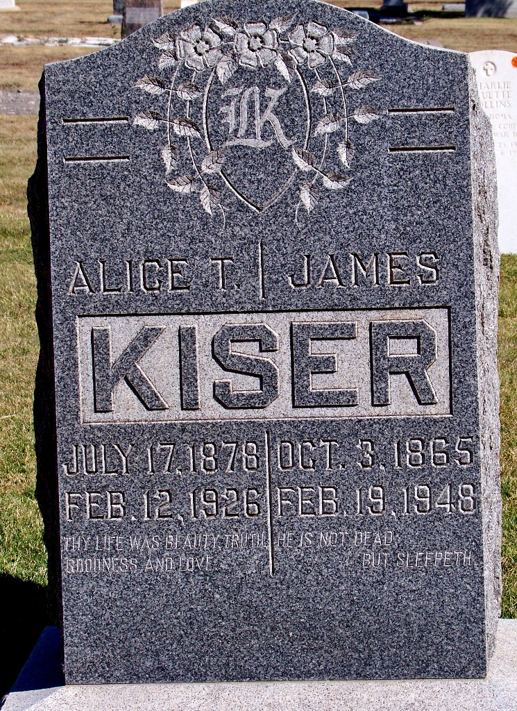 | Name | Kiser, James , Mrs. (Alice T.) |