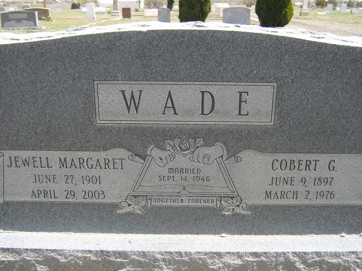 | Name | Wade, Cobert G., Mrs. (Jewell Margaret (Judy)) |