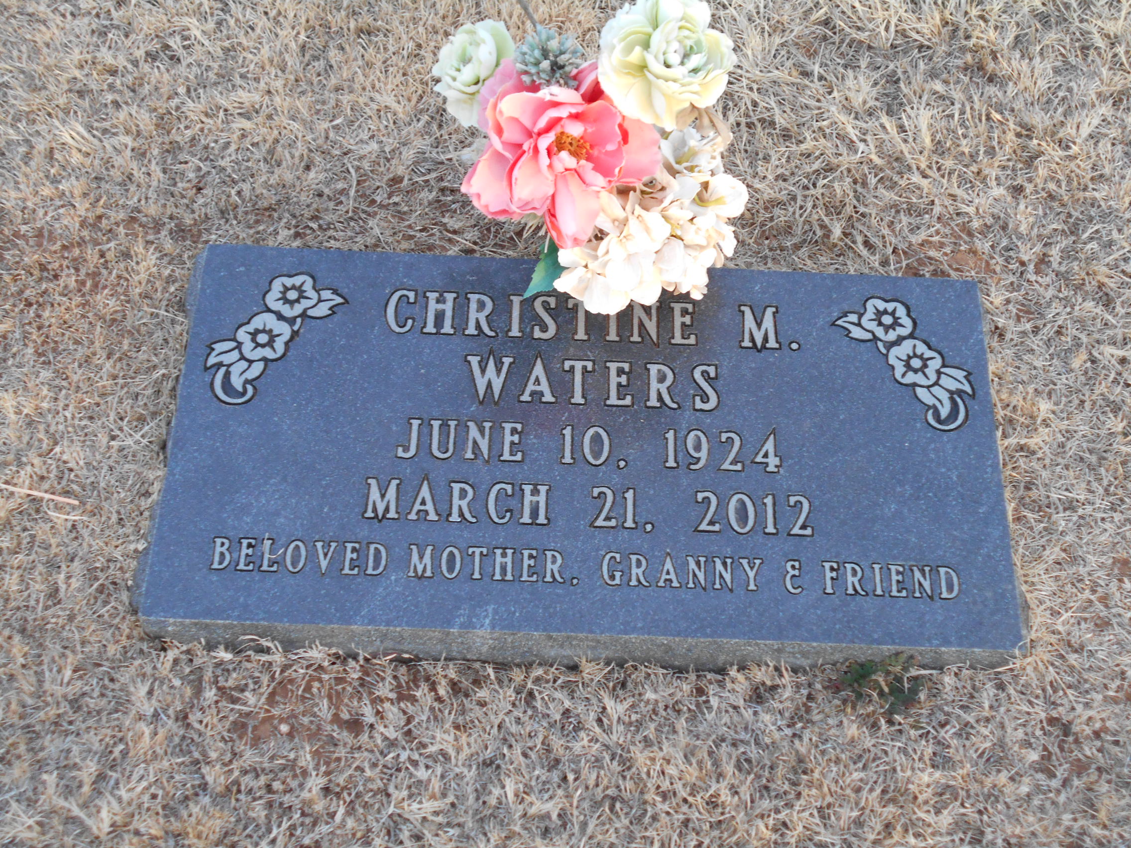 Obituary![]() | Waters, Christine Marie Austin Christine Marie Waters of Lubbock departed this life on Tuesday, March 21, 2012 at the age of 87. She was born June 10, 1924 in Durango, CO to Charles Ashley and Ethel (Stephenson) Austin, Sr. She worked as church secretary and was a member of First United Methodist Church in Abernathy. Christine also served as the former secretary for the Abernathy Chamber of Commerce. Those left to cherish her memory are one daughter, one son, eight grandchildren, and one precious great-grandson. Christine was preceded in death by her parents; one daughter, Lisa Gaye Waters; a brother, Charles Ashley Austin, Jr., and a sister, LaVerne Kotara. Family will receive friends from 10-11:30 a.m. Saturday, March 24, 2012 at First United Methodist Church in Abernathy. Services will begin at 1:00 p.m. with interment to follow at Abernathy IOOF Cemetery. |