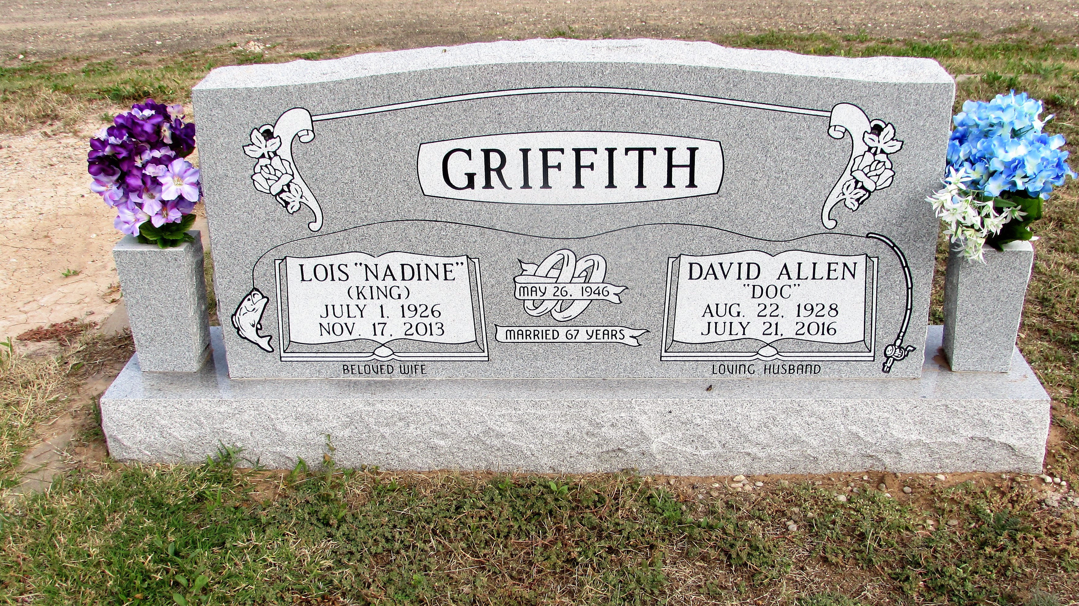 Obituary![]() ![]() | Griffith, David Allen (Doc) D.A. “Doc” “Ricochet” Griffith, 87, of Amarillo died Thursday, July 21, 2016. Services will be at 10 a.m. today in Cox Funeral Home Benton Chapel with Charlie Cox officiating. Graveside services will follow at 2 p.m. in I.O.O.F. Cemetery in Plainview. Arrangements are by Cox Funeral Home, 4180 Canyon Drive. Mr. Griffith was born Aug. 22, 1928, in the family home in the country near Pampa to Dr. C.A. and Ethyl Griffith. He was raised in Hale Center. He married Nadine King on May 26, 1946, in Lockney. They moved to Panhandle in 1951 and made it their home until moving to Amarillo in 1970. Mr. Griffith worked in security for Pantex from 1951 until his retirement in 1991. He was a family man. He loved being a husband and dad and most of all, “PaPa” to his grandchildren and family. As a young man, he was a semi-professional baseball pitcher as well as a boxer. As his kids were growing up, he coached them in sports and enjoyed being involved in their activities. He loved the outdoors, hunting, fishing and spending time at the lake with his family. He taught them all to ski at an early age. He will be remembered for being a man that could do, fix or build anything. He was a skilled woodworker. He was deeply loved and will be missed by his family. He was preceded in death by his wife, Nadine, on Nov. 17, 2013; a sister, Verna Mae Jones; and a daughter-in-law, Janice Griffith. Survivors include a daughter, Vonda Marquez and husband Joe of Amarillo; three sons, Gary Griffith of Amarillo, Randy Griffith and wife Peggy of Shawnee, Okla., and Ron Griffith and wife Amy of Canyon; 13 grandchildren, Brandon, Stony, Stacy, Shawna, Brett, Craig, Scott, Lauren, Alex, Marisa, Kevin, Brian and Joel; 16 great-grandchildren; and a great-great-granddaughter. The family suggests memorials be to Faith City Mission, 401 S.E. Second St., Amarillo, TX 79101. The family will receive friends from 6 to 8 p.m. today at the funeral home. (Published in Amarillo Globe-News, July 25, 2016) |